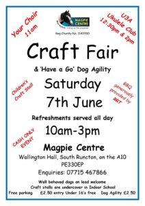 Also on Saturday 7th June, we will be hosting our annual Craft Fair and Have-a-Go Dog Agility Day. This family-friendly event features a dog agility course, local handmade crafts, delicious refreshments, raffles, and a tombola. Entry is £2.50 per adult, with under 16s admitted free. The event runs from 10am to 3pm with free parking available, and payments are cash only.